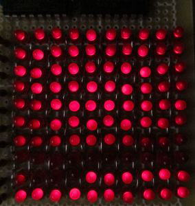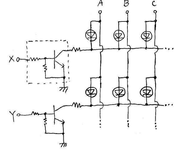 1個目で列、2個目で行を駆動し、10行10列で100個が順番に点灯するようにしました。