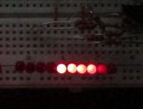 写真は、1/1600で撮影した5kHz、10進カウントのLED写真です(4017を使ったごく簡単なリングカウンターです)。