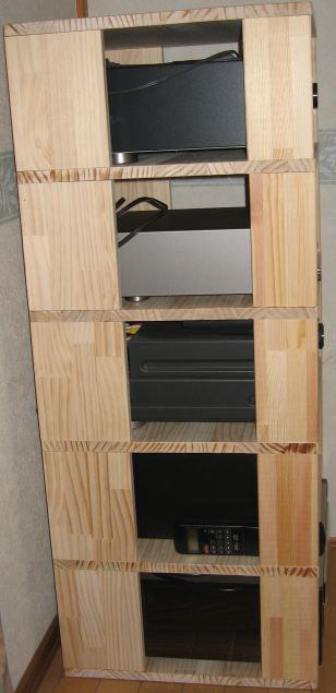 棚板はMDFボードで18mm厚くらいか。MDFは反りやすいが、18mmもあれば当分は持つだろう。