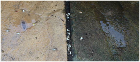 しかし、所詮は砂岩、日本の風土ではすぐにかびて黒くなります。