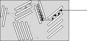 右図は炭の場合の模式図で、白く図示した板状の長方形がグラファイト結晶を示します。