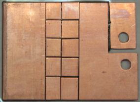 あとからの銅板の位置決めだと位置の不揃いで汚くなりそうだし、はんだの抵抗も気になるしで、