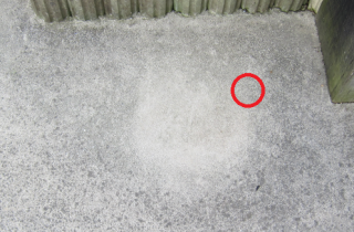 漏水探知センサーの示した場所は下の赤丸あたり。