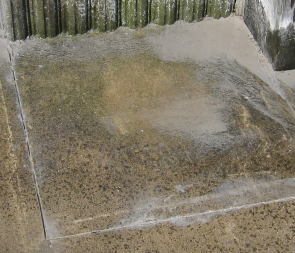 良く見ると枕木で作った水栓の根元が1〜2cmくらい元の場所からずれていて、傾いている。