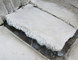 本当は右辺も砕きたいとこだけど、切り込みが2本しか入れられなかったし、コンクリの端にあたるので次第に分厚くなってるし、