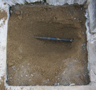 土を掘ってパイプを見えるようにする。石2枚分だと作業がやり易い。