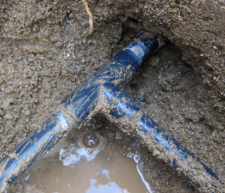 バルブを開けてみる。ビンゴ、確かに漏れている。しかし、検知したポイントより奥から水が出て来ているようだ。