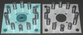 ローターは、鉄板にフロアタイルから削り出した磁石位置決め板と軸の外部スペーサーが接着してあります。